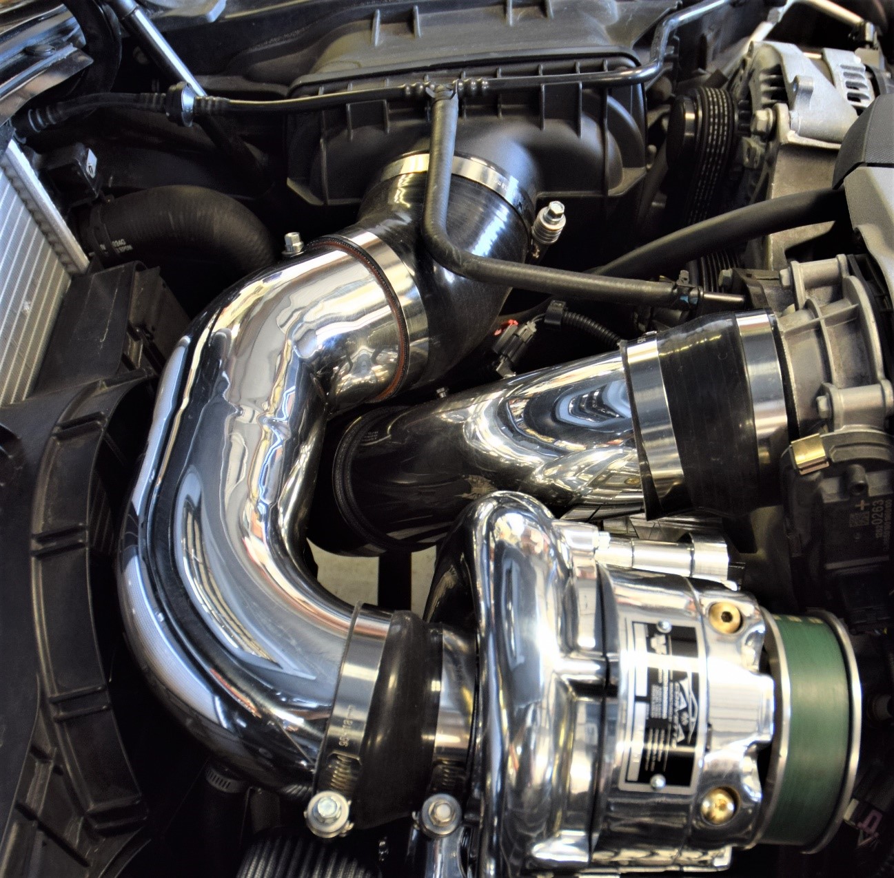 The supercharger install is very straightforward and can be performed at home with basic mechanical skills and tools. Once finished, everything will fit under the stock hood and all covers, including the radiator to hood heat extractor will fit back on the vehicle. The car will need to be raised on jackstands or a lift for proper access to the underside of the vehicle.