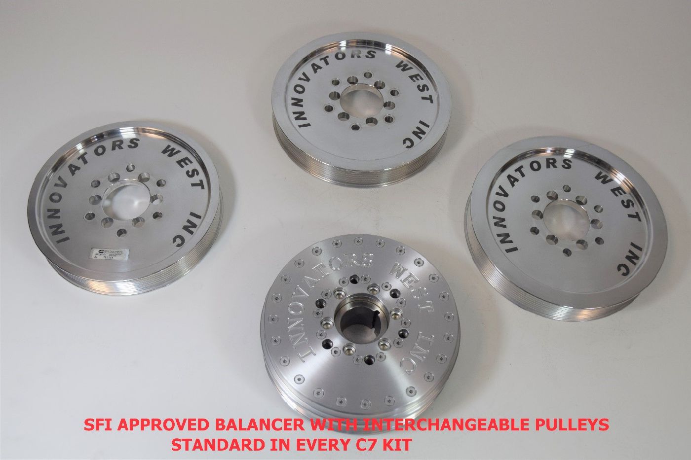 With an all aluminum case design for lower rotating mass, stress-proof steel hub and 1040 steel internal inertia rings for outstanding durability, our balancers are a great investment for your street or race vehicle and come standard in ALL our C7 supercharger systems.